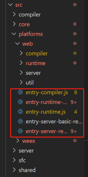 一看,怎么有好几个,它们的区别具体可参考:https://cn.vuejs.org/v2/guide/installation.html#%E5%AF%B9%E4%B8%8D%E5%90%8C%E6%9E%84%E5%BB%BA%E7%89%88%E6%9C%AC%E7%9A%84%E8%A7%A3%E9%87%8A,我们这里不做赘述。选择其中一个入口src\platforms\web\entry-runtime-with-compiler.js 我们重点关注Vue的变化,查看源码可知 src\platforms\web\entry-runtime-with-compiler.js里引用了src\platforms\web\runtime\index.js,重写了Vue.prototype.$mountsrc\platforms\web\runtime\index.js里引用了src\core\index.js,在Vue.prototype挂载了$mounted方法,并对Vue.config进行配置等src\core\index.js里引用了src\core\instance\index.js, 并调用initGlobalAPI(Vue)进行全局API初始化
