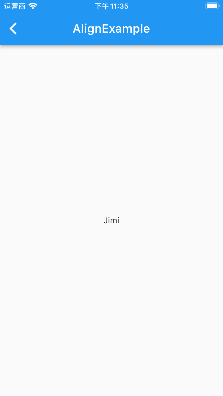 Center使用 _CenterExampleState();}class _CenterExampleState extends State { @override Widget build(BuildContext context) { return Scaffold( appBar: AppBar( title: Text("AlignExample"), ), body: Center( child: Text("Jimi"), ), ); }} 效果展示完结我们对Flutter的所有容器类组件进行了一个讲解,那么此篇幅就已经完结了,在接下来我们继续讲解Flutter的基础类组件。 免责声明:如果侵犯了您的权益,请联系站长,我们会及时删除侵权内容,谢谢合作! |