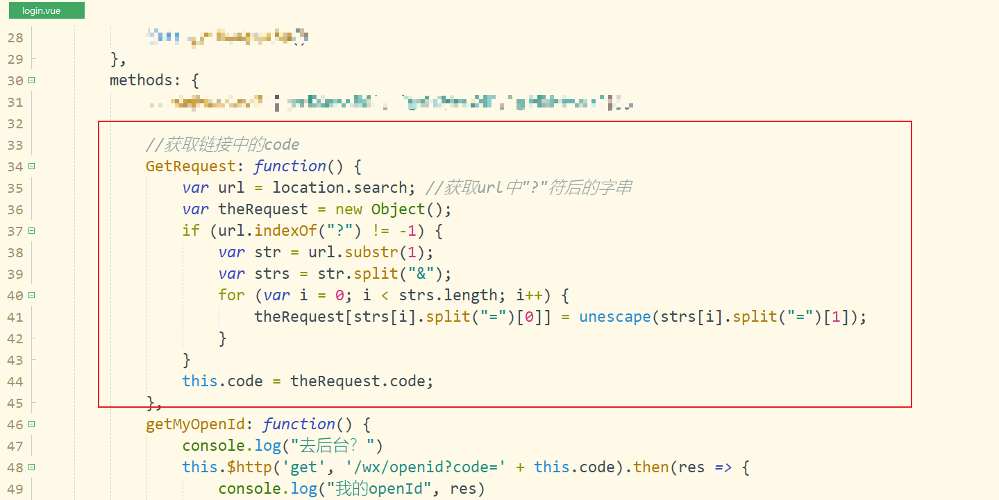 再看login页面:login页面内的js获取微信传过来的code,然后用这个code作为参数去访问我的后台接口