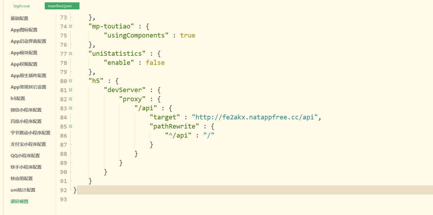 uniapp的manifest.json 源码视图