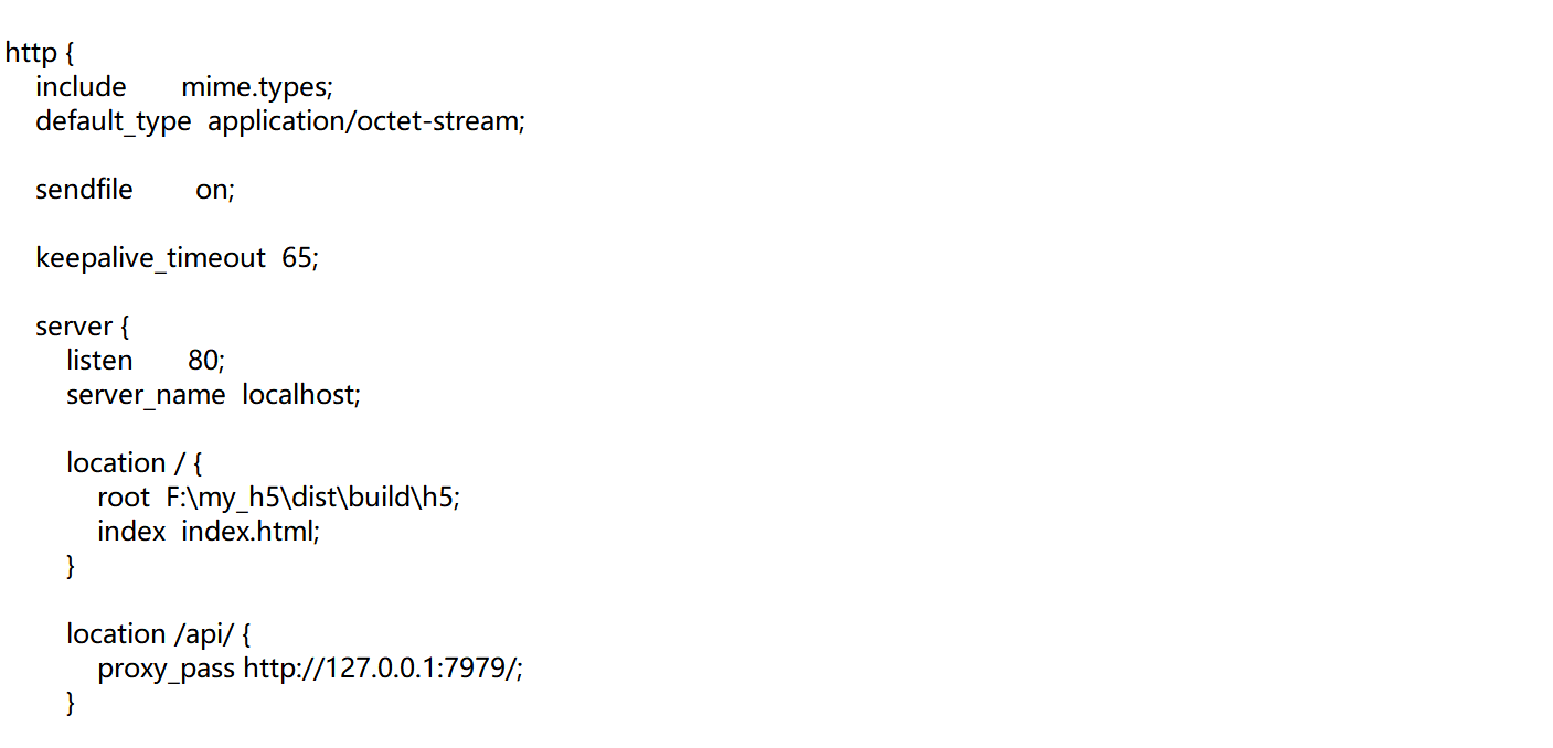 我的nginx配置 (打包的H5 --> nginx的80端口 --> http://fe2akx.natappfree.cc ) (访问 http://fe2akx.natappfree.cc/api 相当于访问127.0.0.1:7979)
