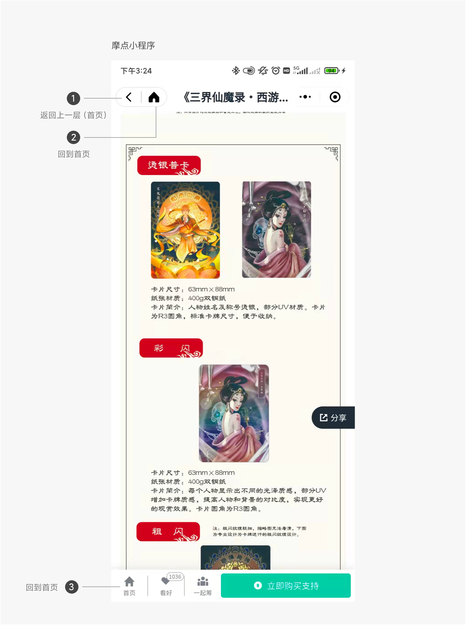 但同时也要避免滥用,如摩点小程序的二级页面,有三个返回首页的按钮,完全没有必要,这就是滥用了。