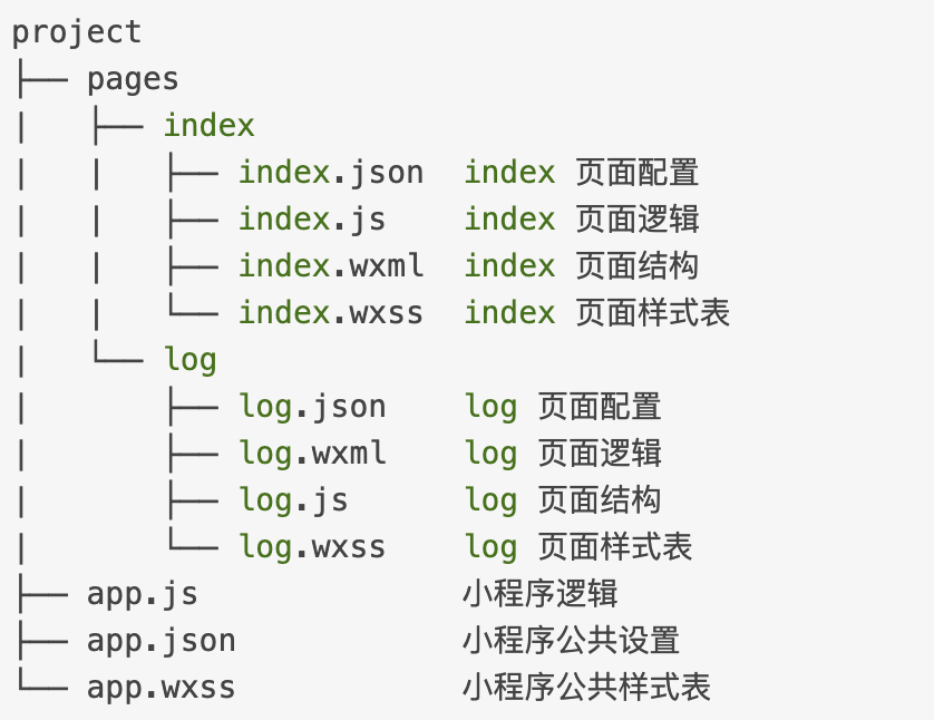 小程序目录结构小程序架构一、技术选型一般来说,渲染界面的技术有三种 1. 用纯客户端原生技术来渲染2. 用纯web技术渲染3. 用客户端原生技术和web技术结合的混合技术(简称Hybrid技术)来渲染小程序技术选型分析过程如下: - 开发门槛:web门槛低,Native也有像RN这样的框架支持
