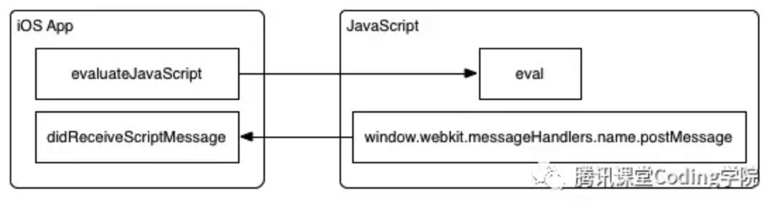 'webframe' === b ? postMessageToWebPage(a) : 'appservice' === b && postMessageToWebPage(a) IOS 通过 WKWebview的window.webkit.messageHandlers.NAME.postMessage实现微信navite代码里实现了两个handler消息处理器: invokeHandler: 调用原生能力 publishHandler: 消息分发