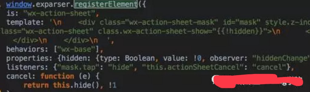 ** Android** 通过WeixinJSCore.invokeHanlder实现,这个WeixinJSCore是微信提供给JS调用的接口(native实现) invokeHandler: 调用原生能力 publishHandler: 消息分发 微信组件 在WAWebview.js里有个对象叫exparser,它完整的实现小程序里的组件,看具体的实现方式,思路上跟w3c的web components规范神似,但是具体实现上是不一样的,我们使用的所有组件,都会被提前注册好,在Webview里渲染的时候进行替换组装。 exparser有个核心方法: regiisterBehavior: 注册组件的一些基础行为,供组件继承 registerElement:注册组件,跟我们交互接口主要是属性和事件