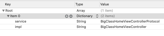 } 3.设置protocol-impClass映射关系 三种方式: 1)使用BeeHive类的-[registerService:service:] 2)使用宏BeeHiveService 3)使用plist文件 该示例中是通过plist文件实现的: //3. 设置protocol-impClass映射关系。使用plist文件注册,在初始化BeeHive时指定plist文件的路径 BHContext.shareInstance()?.serviceConfigName = "BeeHive.bundle/BHService"