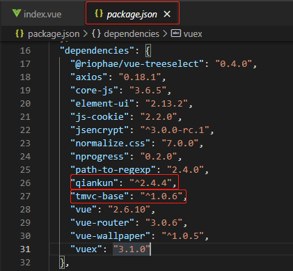 或是在package.json配置文件按照对应依赖: "qiankun": "^2.4.4", "tmvc-base": "^1.0.6",