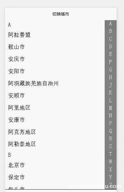 在很多微信小程序中因为分区域服务可能都需要城市切换,如果又一个现成的轮子那大家就不用自己造了。 JS文件: - var city = require('../../utils/city.js');