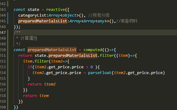 模板中 v-for遍历computed返回的变量preparedMaterialsList 而不是state.preparedMaterialsList